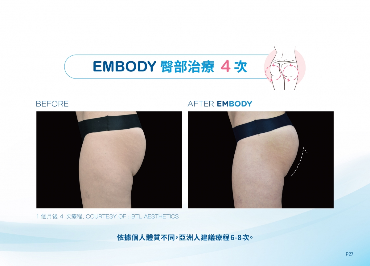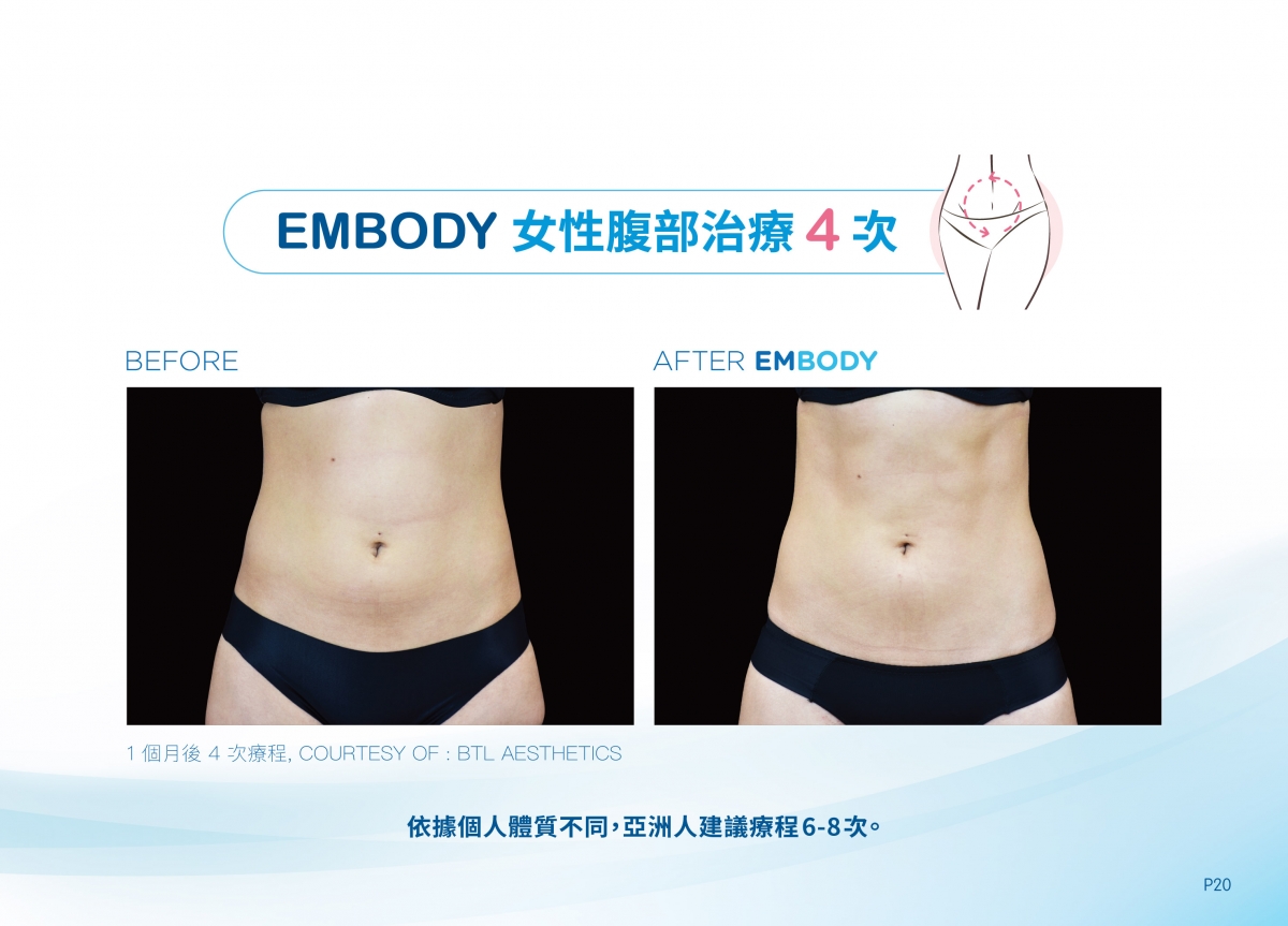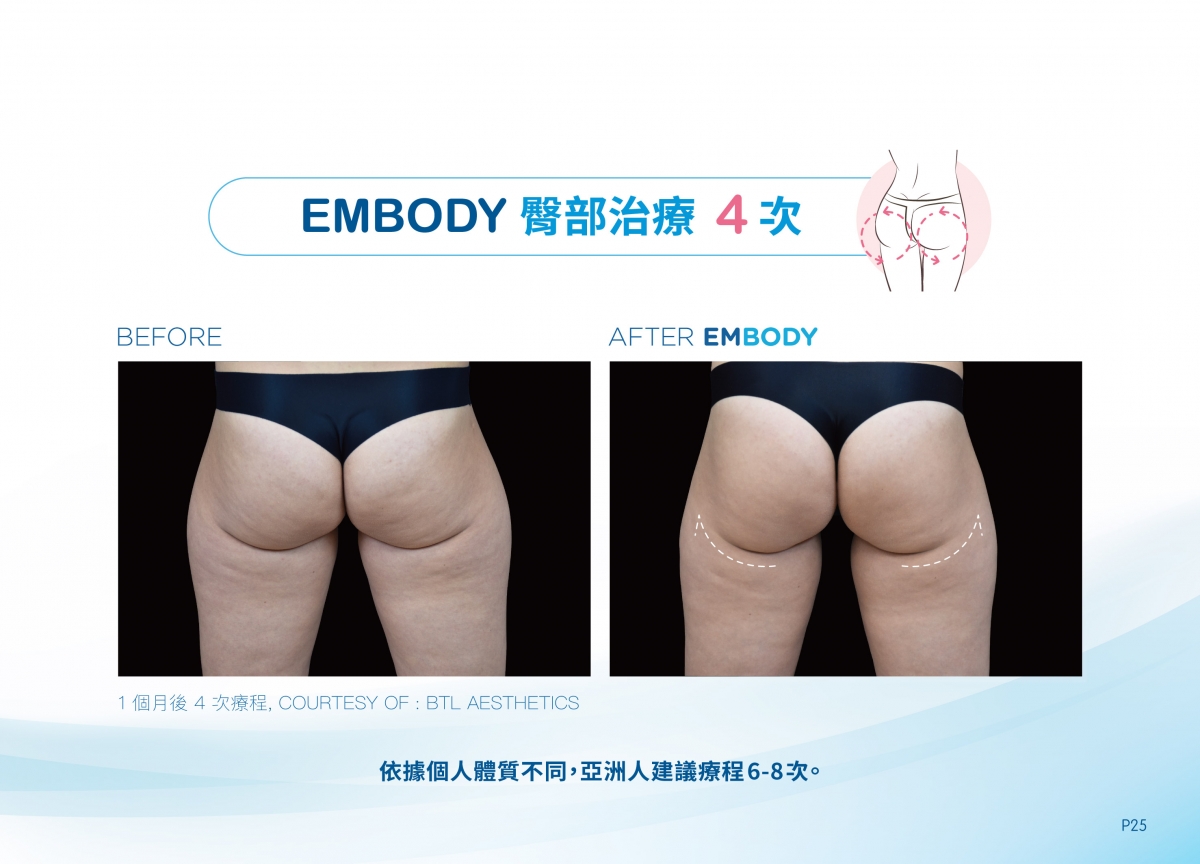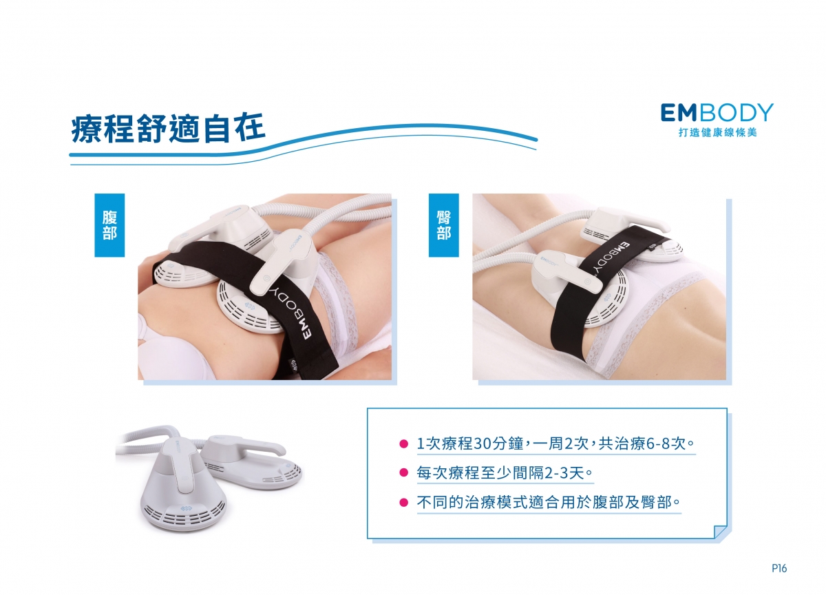 建議最後一次療程後的2-6周回診評估結果,療程效果與滿意度會依據每個人的身體狀況與身型有所不同,請依診所醫師及專業人員建議搭配與執行方式,亦可與減脂產品共同搭配使用。