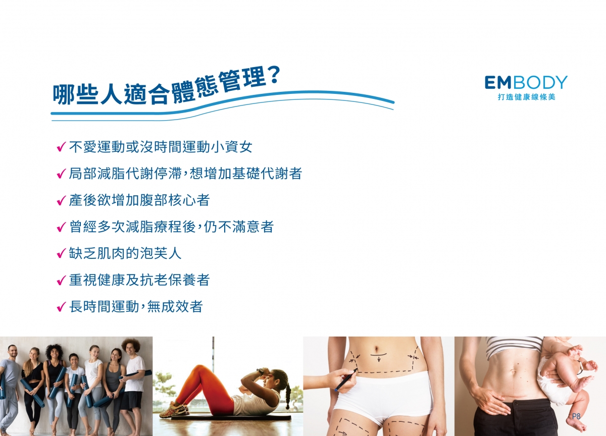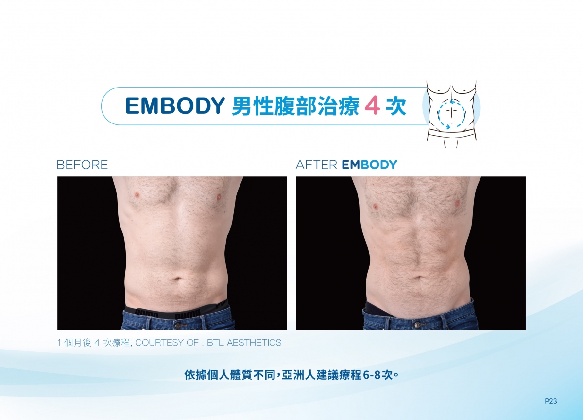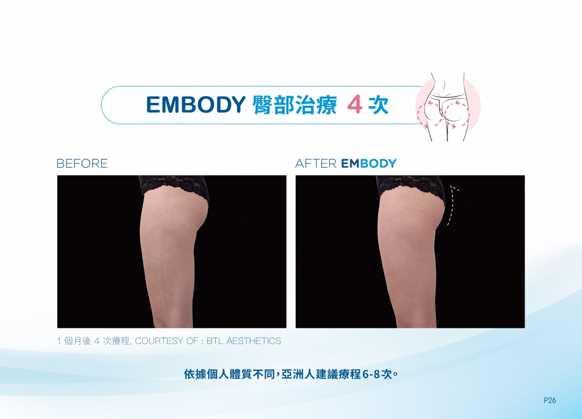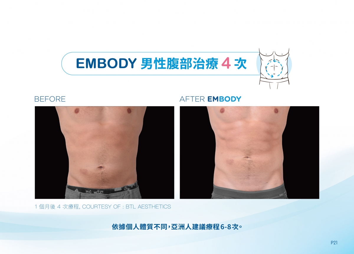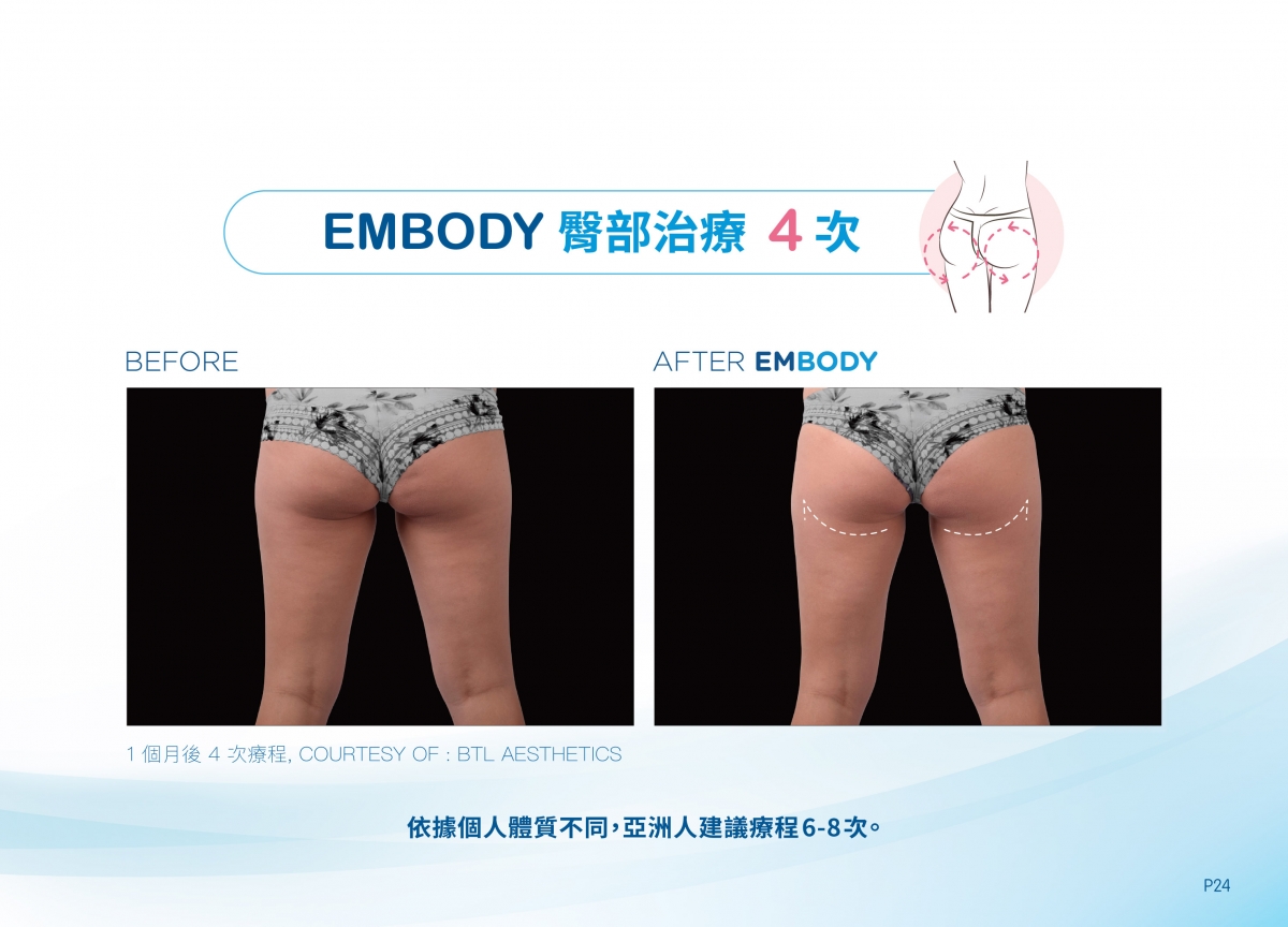 建議最後一次療程後的2-6周回診評估結果,療程效果與滿意度會依據每個人的身體狀況與身型有所不同,請依診所醫師及專業人員建議搭配與執行方式,亦可與減脂產品共同搭配使用。
