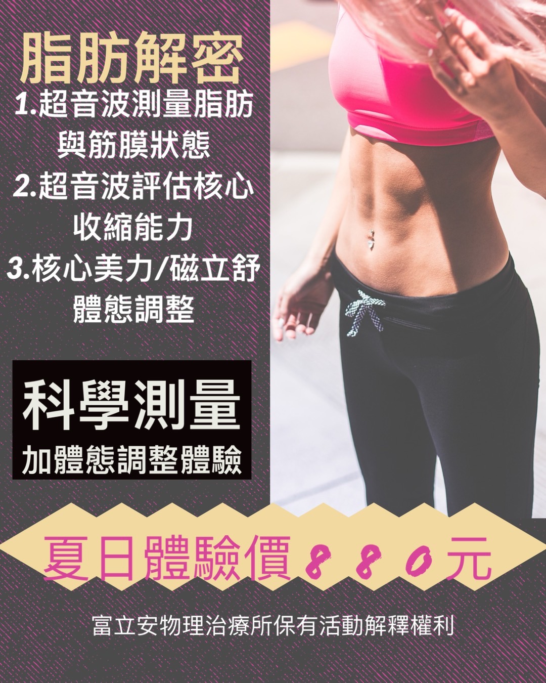 內容包含超音波科學測量與HIFEM體驗,解密你的小腹組成!